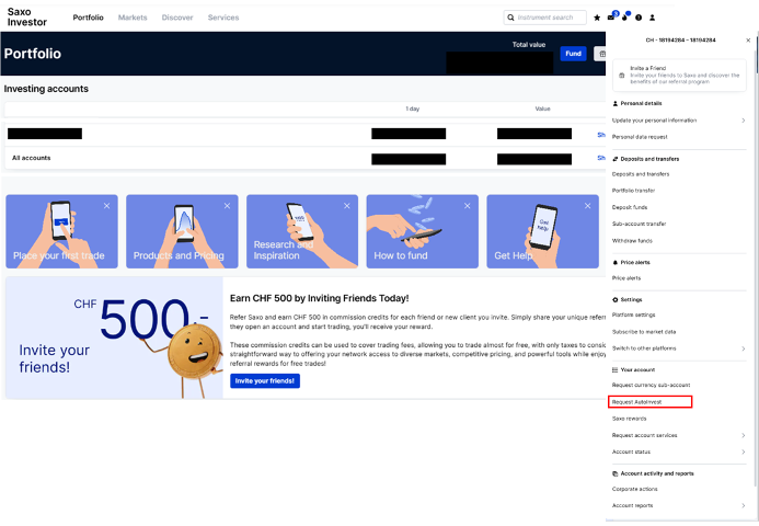 - SAXO will then prompt you to dedicate a CHF number to your ETF. How much do you want to invest per month into a specific ETF? Remember, this can all be changed afterwards.