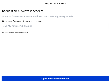 - Give your account a name for easy reference and click “Open AutoInvest account”.